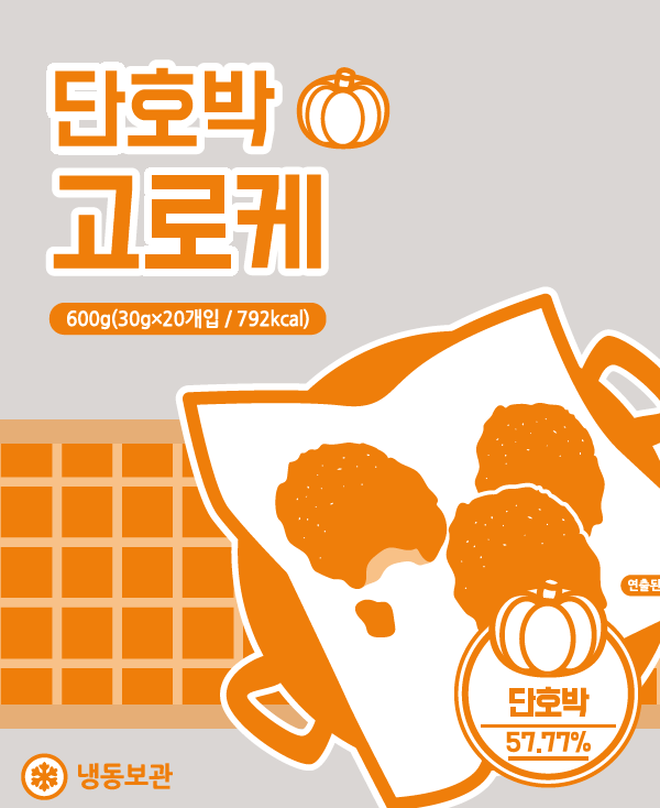 제품명 : 단호박 고로케 규격 : 600g(30g*20EA) 성분 : 단호박 57.77% 보관방법 : -18℃ 이하 냉동보관 소비기한 : 제조일로부터 18개월 조리방법 : 냉동 상태의 제품을 약 165 ~175℃의 기름에서 약 3~5분간 튀겨 드세요.