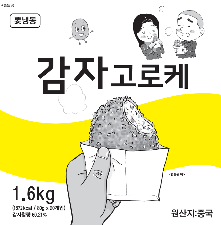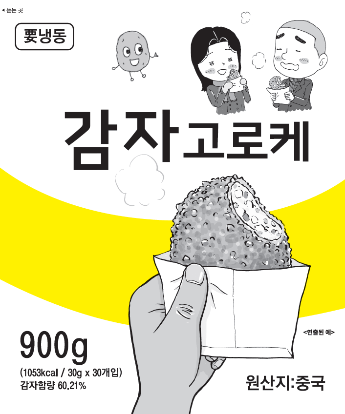 제품명 : 감자고로케 원산지 : 중국 규격 : 900g(30g*30EA) 성분 : 감자 60.21%, 당근 2.68% 보관방법 : -18℃ 이하 냉동보관 소비기한 : 제조일로부터 24개월까지 조리방법 : 냉동 상태의 제품을 약 175℃의 기름에서 약 2~3분간 튀겨 드세요.