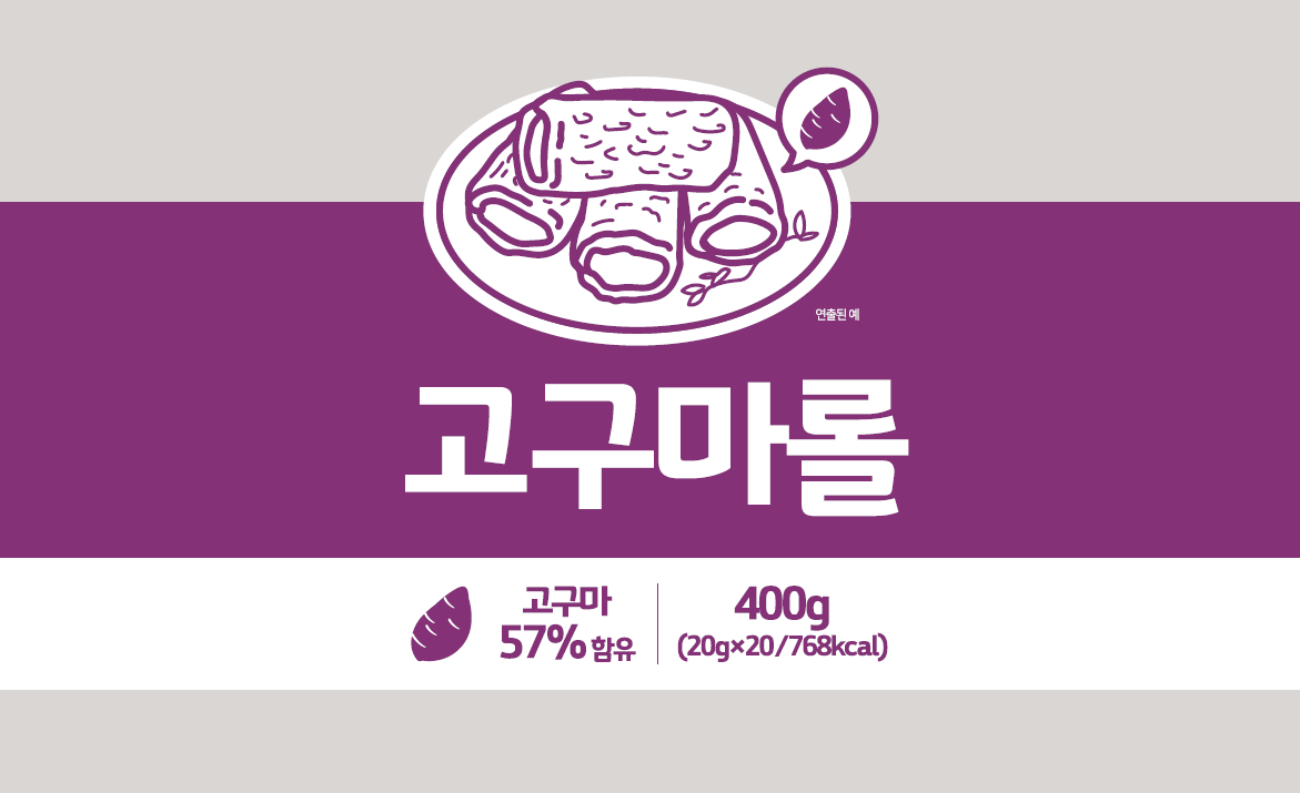 제품명 : 고구마롤 원산지 : 베트남 규격 : 400g(20G X 20) 성분 : 고구마 57%, 라이스페이퍼, 녹두 12%, 설탕, 정제염 보관방법 : -18℃ 이하 냉동보관 소비기한 : 24개월 조리방법 : 냉동상태의 제품을 170~180℃의 기름에 3~5분정도 튀겨 드세요. 주의사항 : 이미 냉동된 바 있으니.해동 후 제냉동 시키지 마시기 바랍니다.
