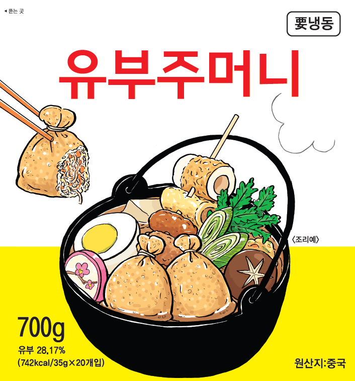 제품명 : 유부주머니 원산지 : 중국 규격 : 700g(35g*20EA) 성분 : 당면, 유부 28.17% 보관방법 : -18℃ 이하 냉동보관 소비기한 : 제조일로부터 24개월까지 조리방법 : 냉동 상태의 제품을 약 90℃ 물에 20분간 끓여 각종 국물요리에 곁들여 사용 하세요.