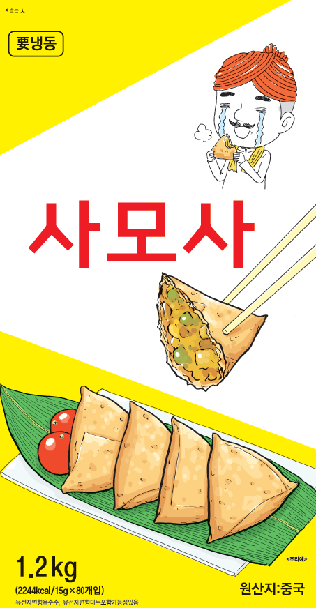 제품명 : 사모사 원산지 : 중국 규격 : 1.2kg(80EA) 성분 : 감자13.53%, 양파10.15% 보관방법 : -18℃ 이하 냉동보관 소비기한 : 제조일로부터 24개월까지 조리방법 : 냉동 상태의 제품을 약 170~175℃ 기름에서 3~4분간 튀겨 드세요.